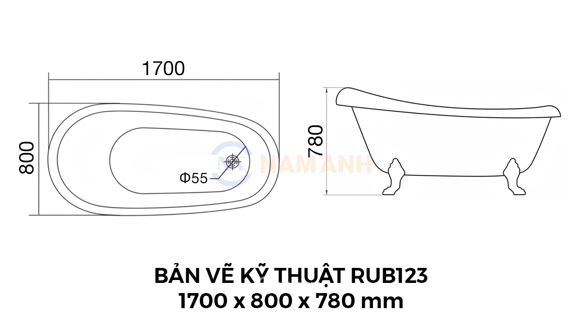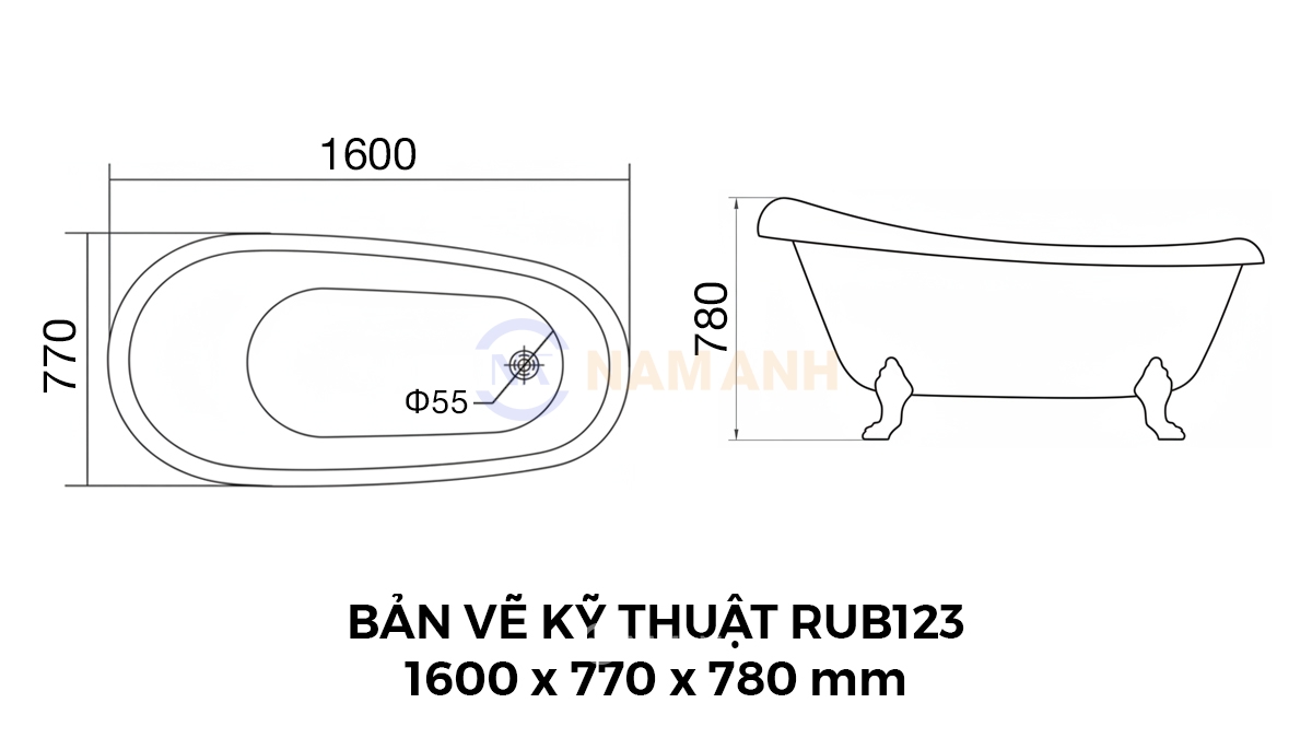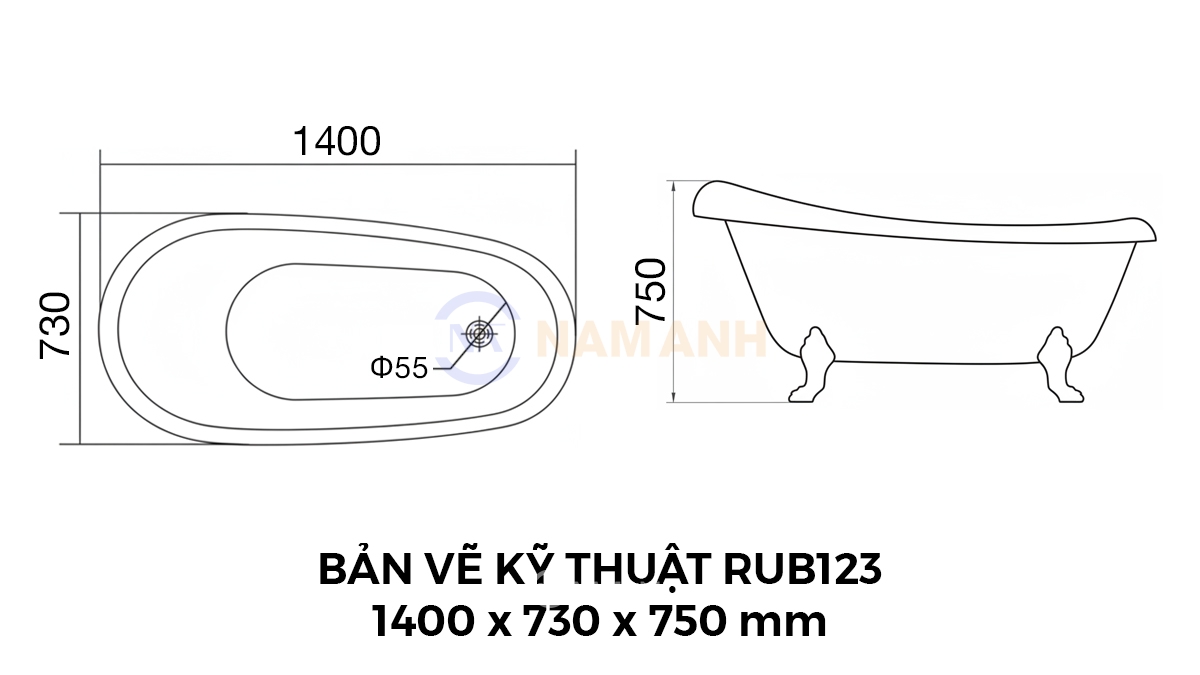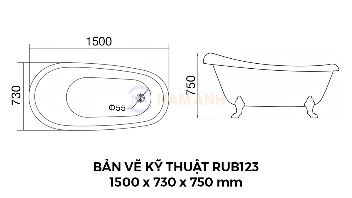 Bồn Tắm Chân Rồng Đặt Sàn Acrylic Rudi RUB123