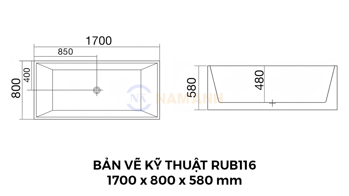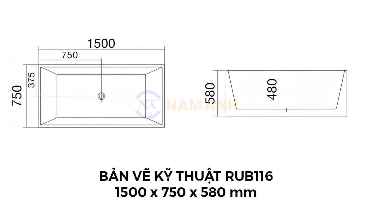 Bồn Tắm Nằm Đặt Sàn Acrylic Rudi RUB116 Chữ Nhật