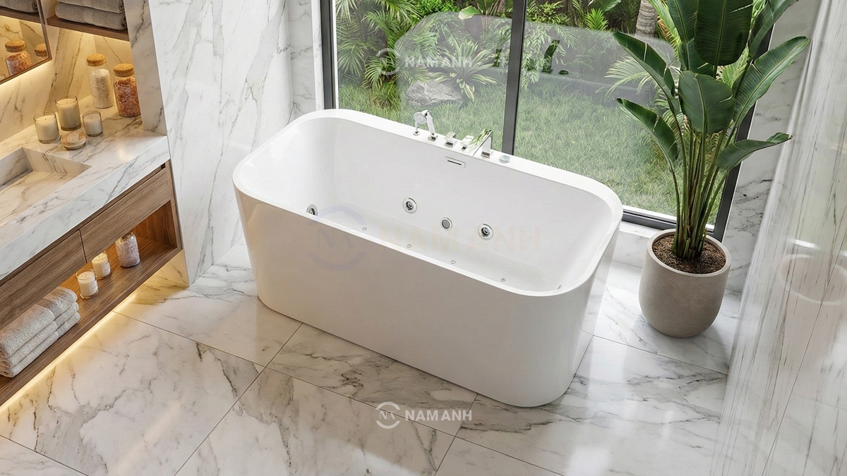Bồn Tắm Nằm Đặt Sàn Massage Acrylic Rudi RUB114 Chữ Nhật