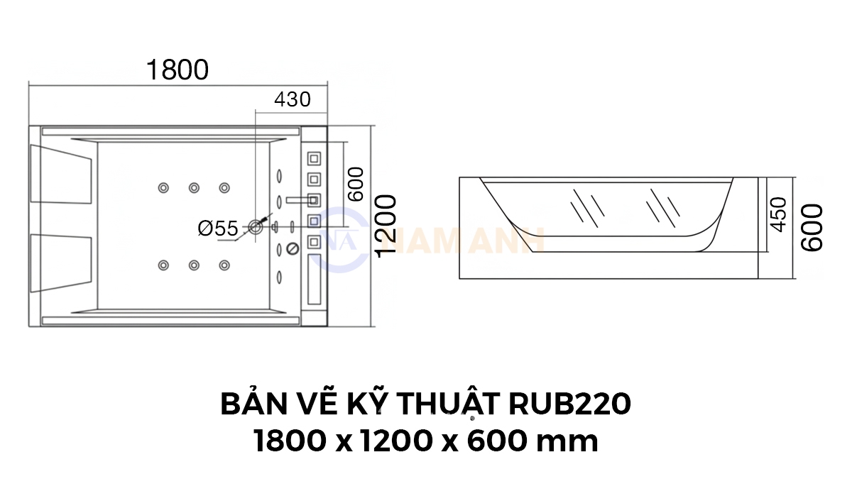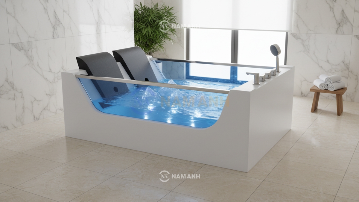 Bồn Tắm Nằm Đôi Massage Acrylic Rudi RUB220 1800x1200 mm Chữ Nhật