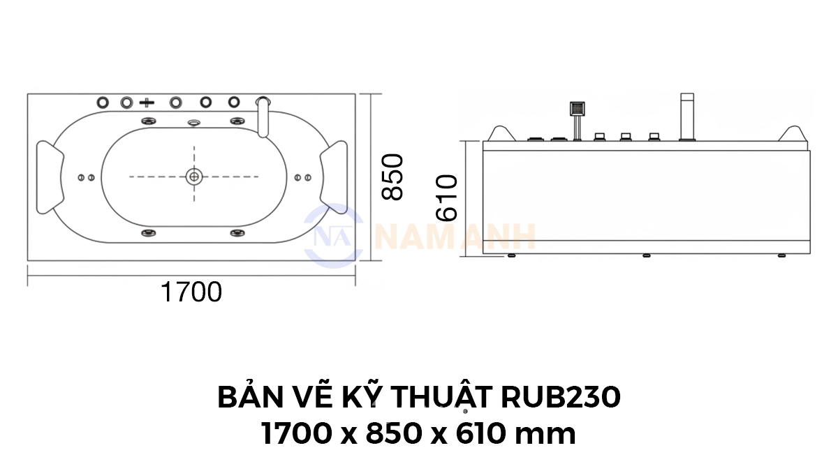 Bồn Tắm Nằm Đôi Massage Rudi RUB230 Chữ Nhật