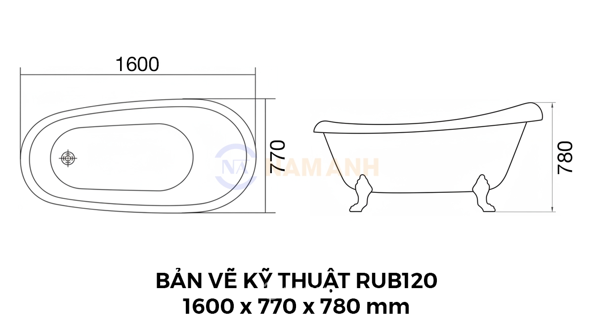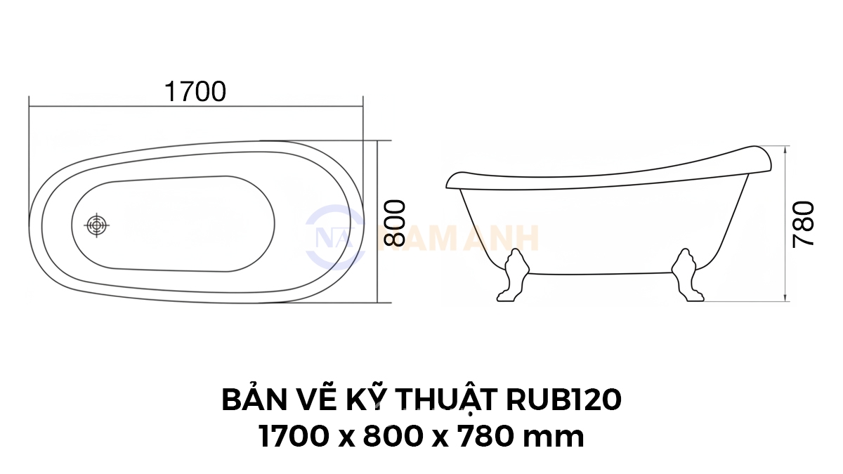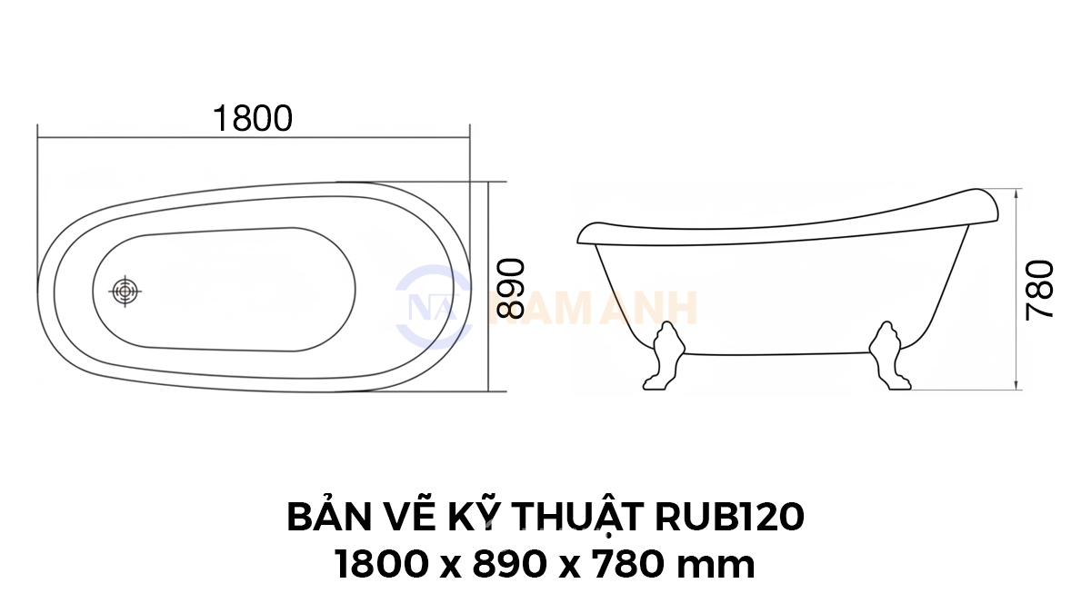 Bồn Tắm Chân Rồng Đặt Sàn Acrylic Rudi RUB120