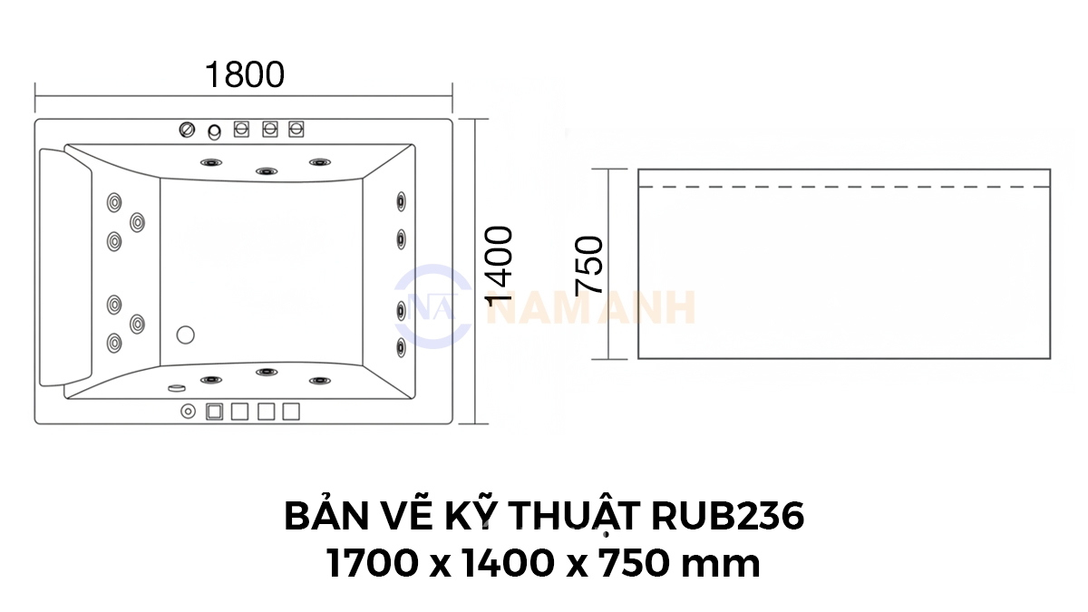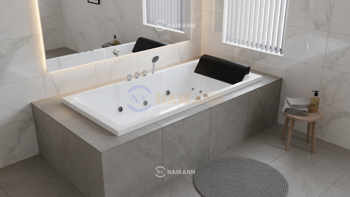 Bồn Tắm Nằm Đôi Xây Massage Rudi RUB236 1800x1400 mm Chữ Nhật