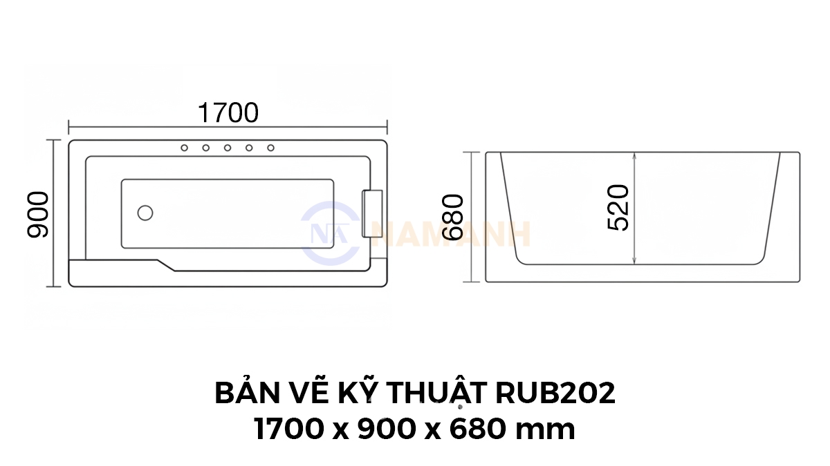Bồn Tắm Nằm Massage Acrylic Rudi RUB202 Chữ Nhật 1700x900 mm Chữ Nhật