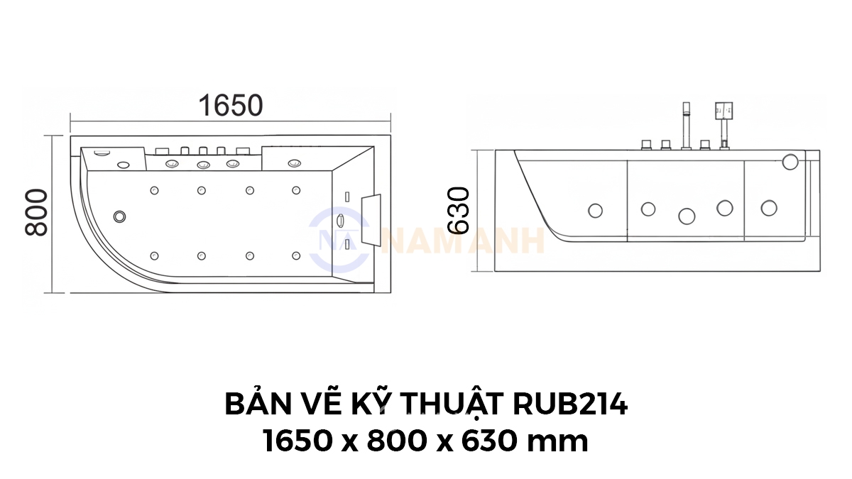 Bồn Tắm Nằm Massage Acrylic Rudi RUB214 1650x800 mm Chữ Nhật