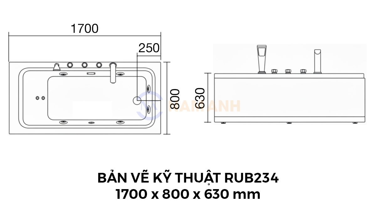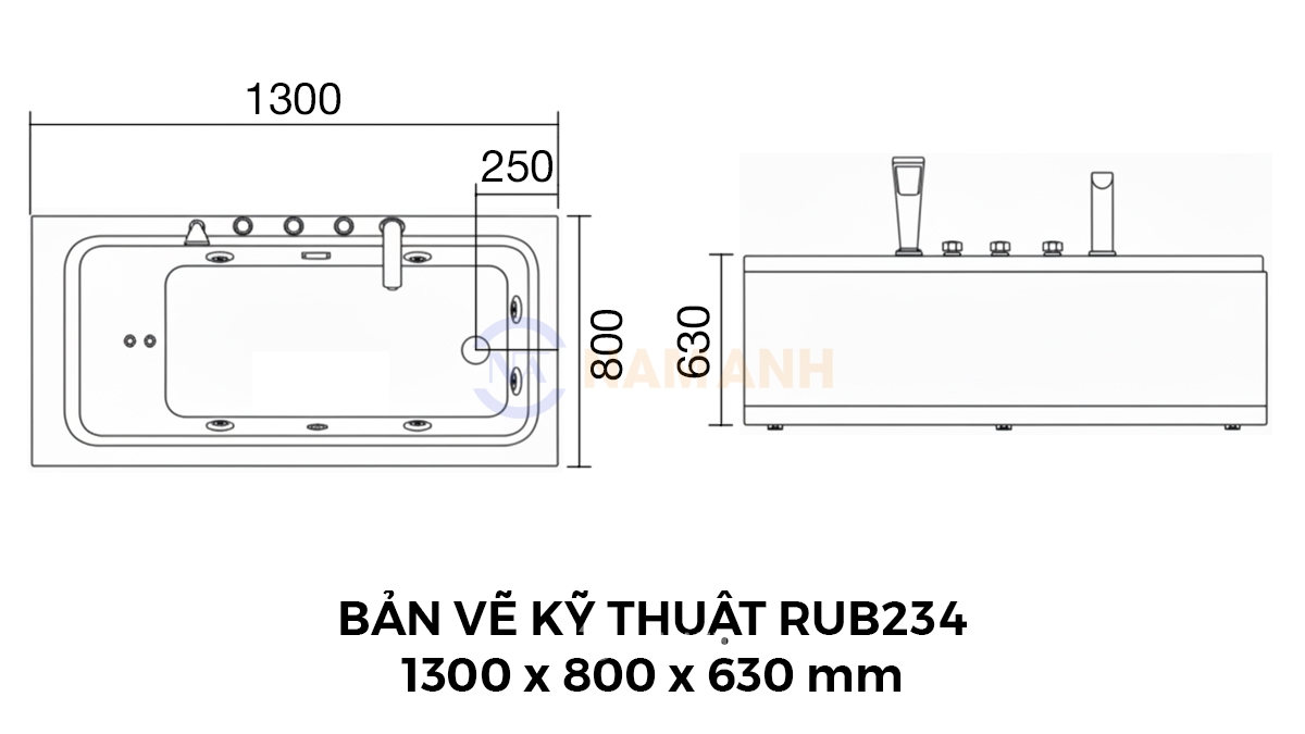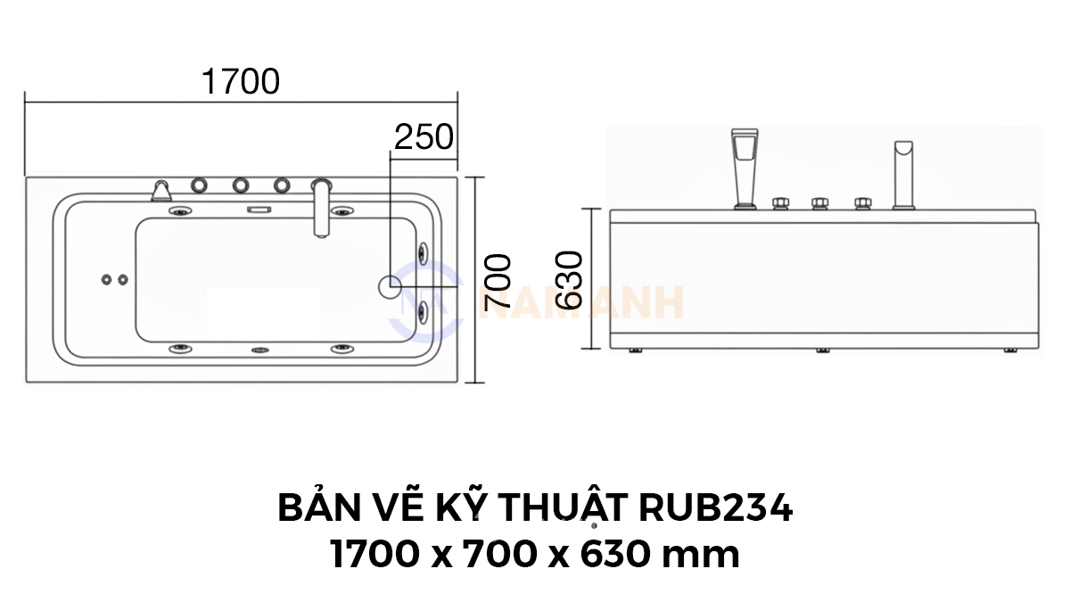 Bồn Tắm Nằm Xây Massage Rudi RUB234 Chữ Nhật