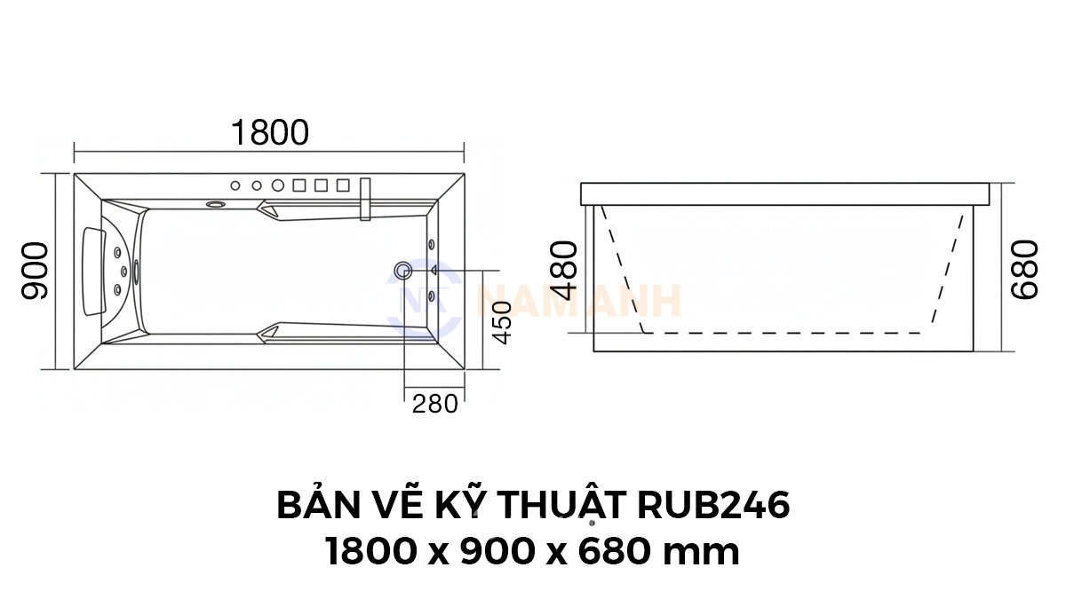 Bồn Tắm Nằm Xây Massage Rudi RUB246 Chữ Nhật