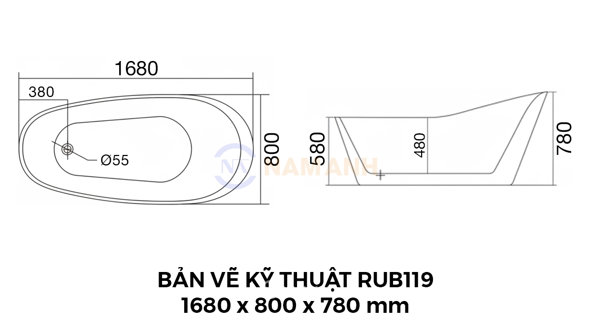 Bồn Tắm Oval Đặt Sàn Acrylic Rudi RUB119