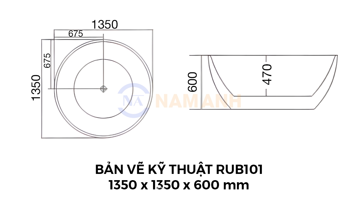 Bồn Tắm Tròn Đặt Sàn Acrylic Rudi RUB101