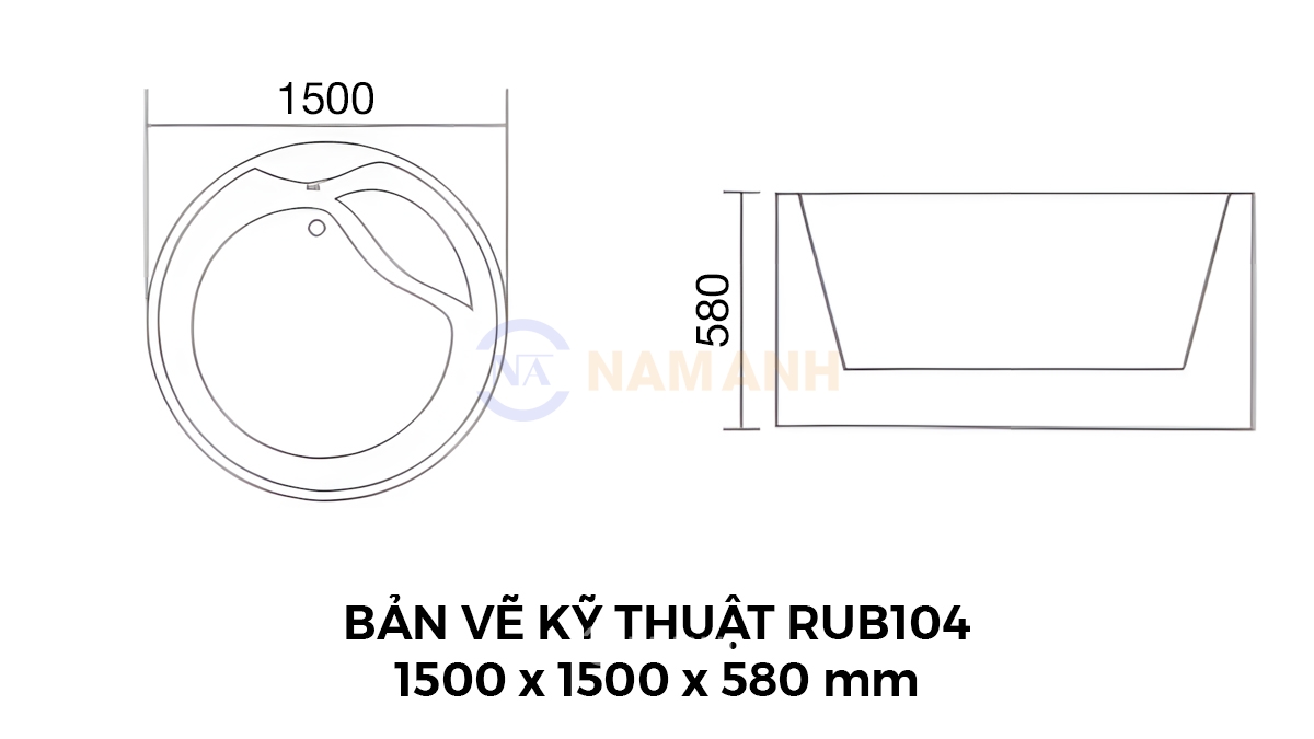 Bồn Tắm Tròn Đặt Sàn Acrylic Rudi RUB104 1500x1500 mm